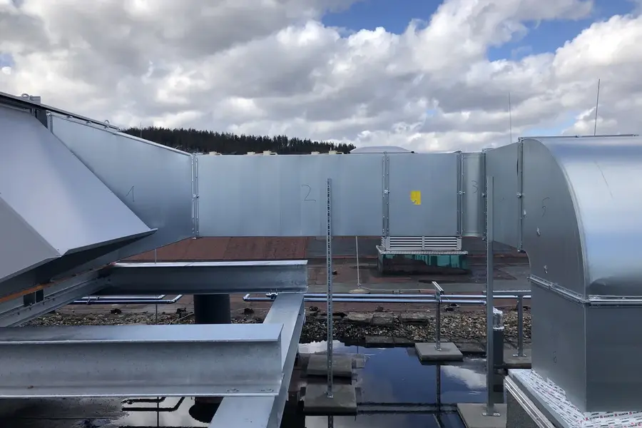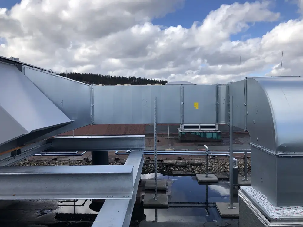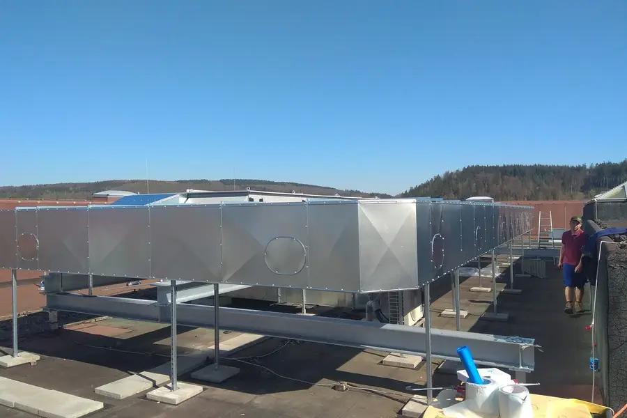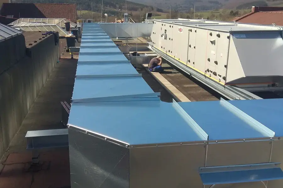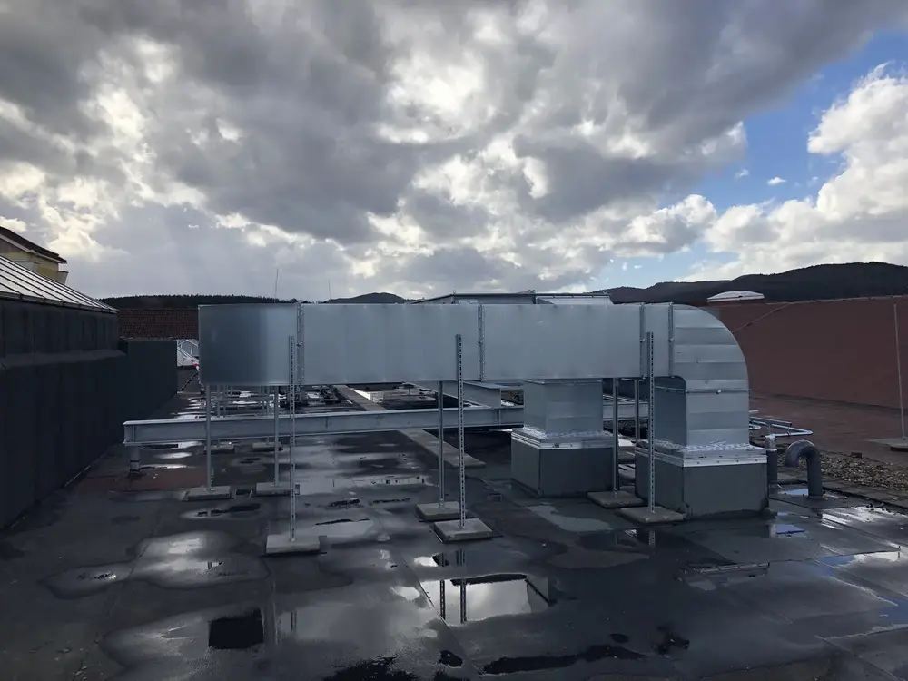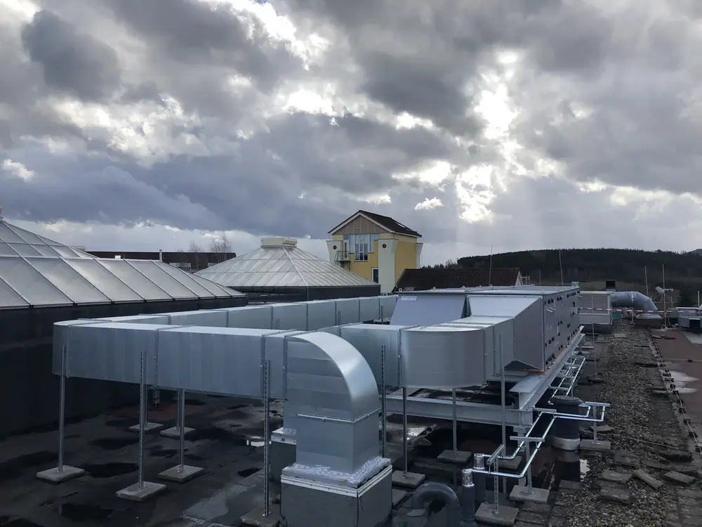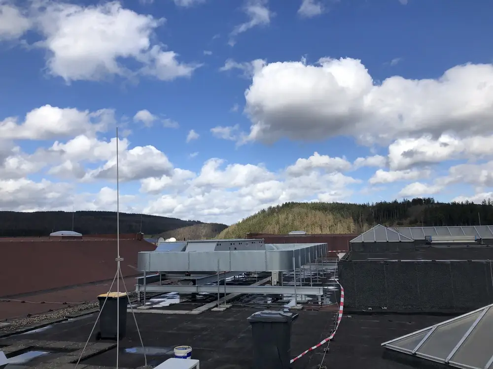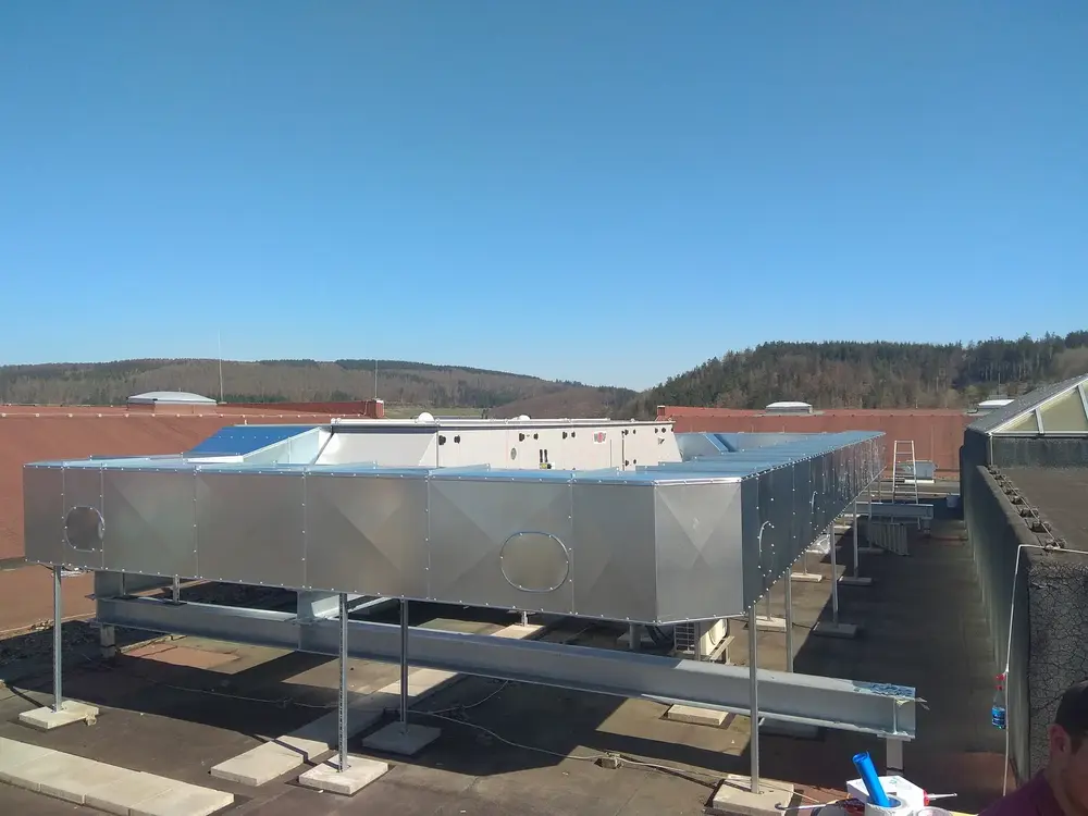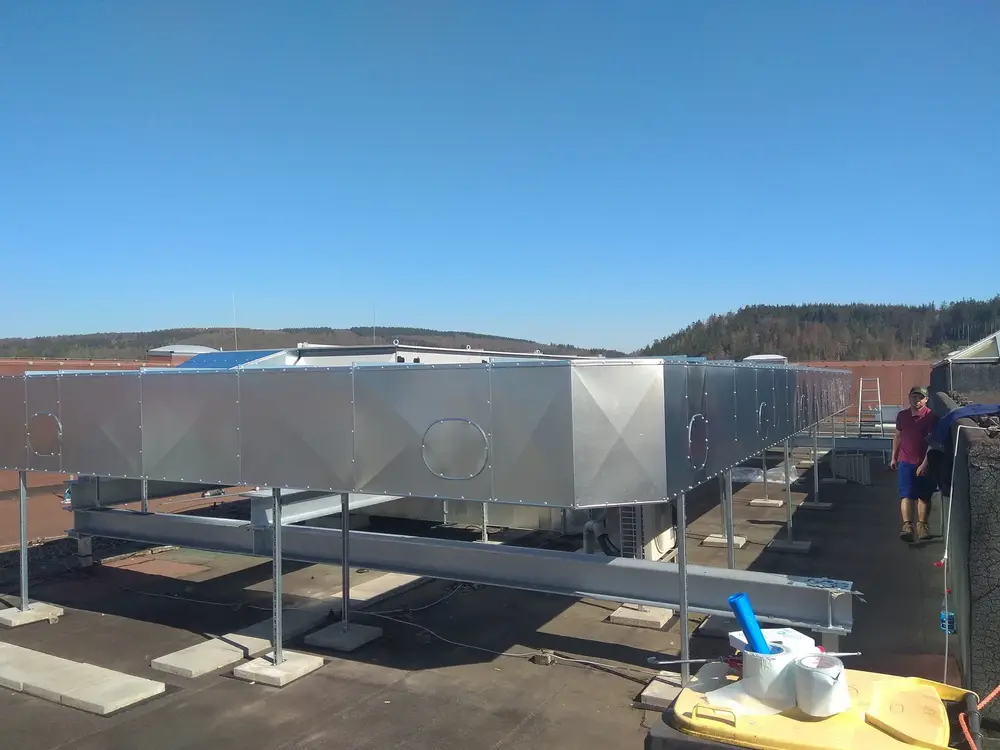 Wir wurden beauftragt, eine Lüftungsanlage im Außenbereich zu dämmen. Lüftung der Zu- und Abluft mit Mineralwolle und verz. Blechmantel. Heizung mit 200% im Außenbereich und verz. Blechmantel.