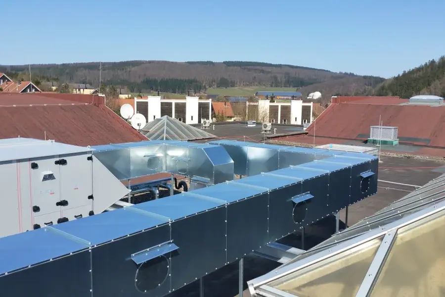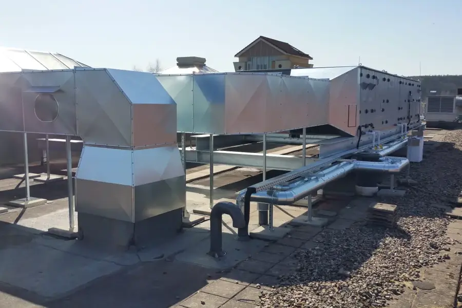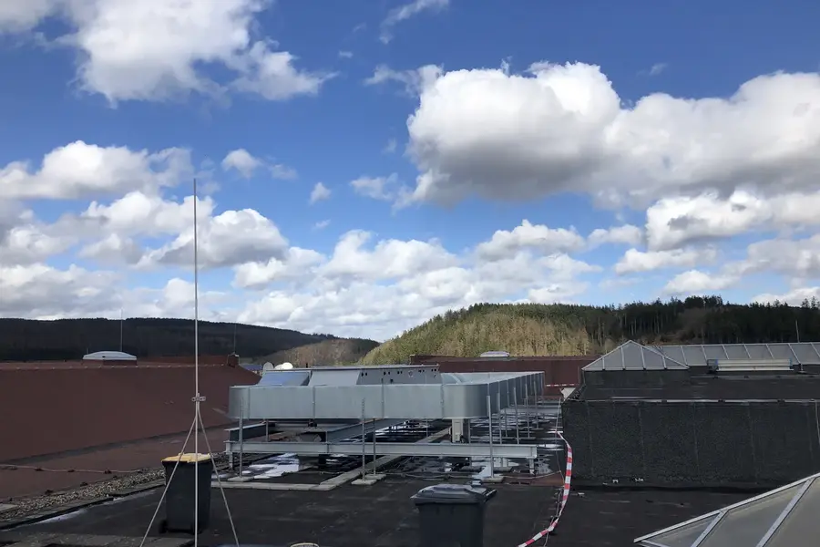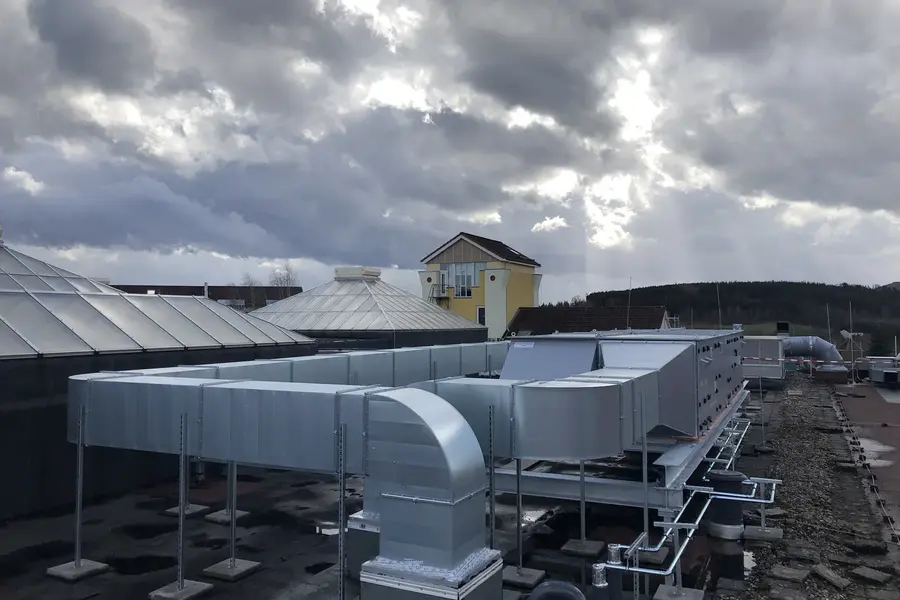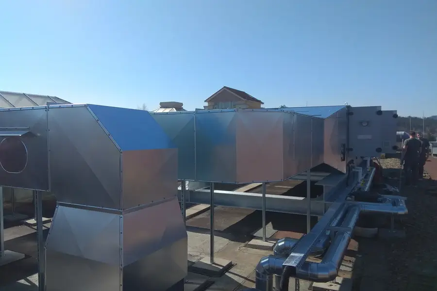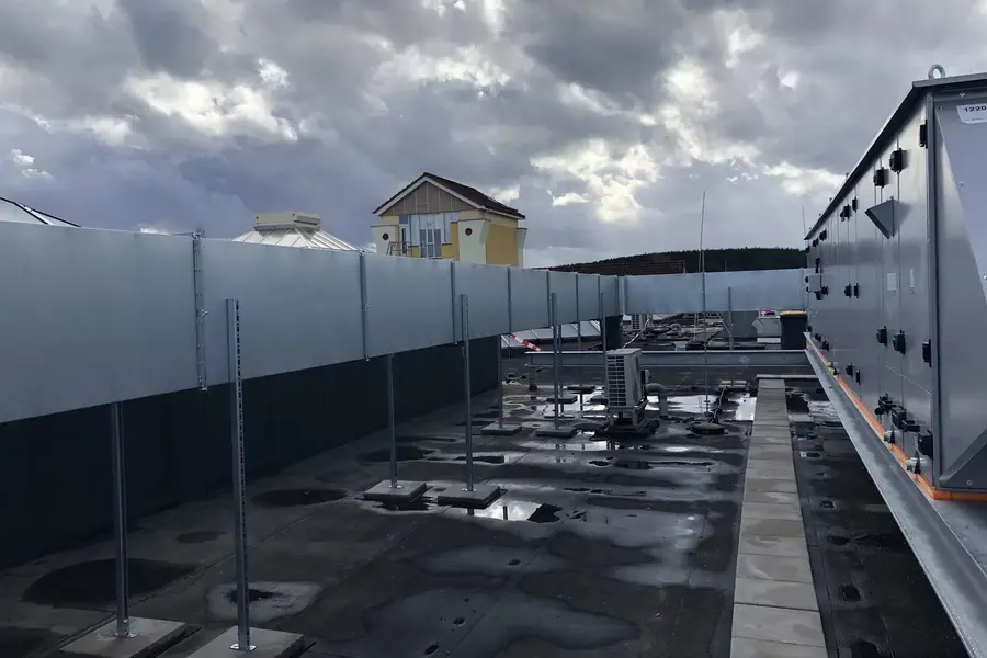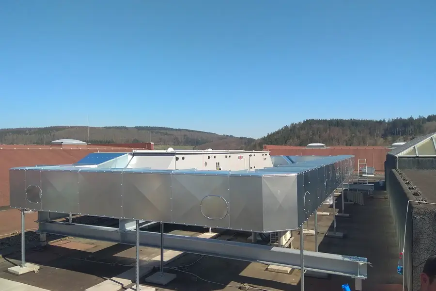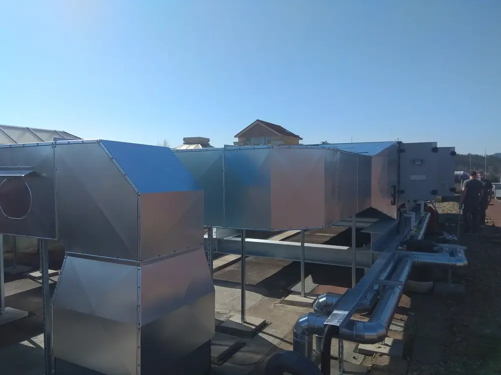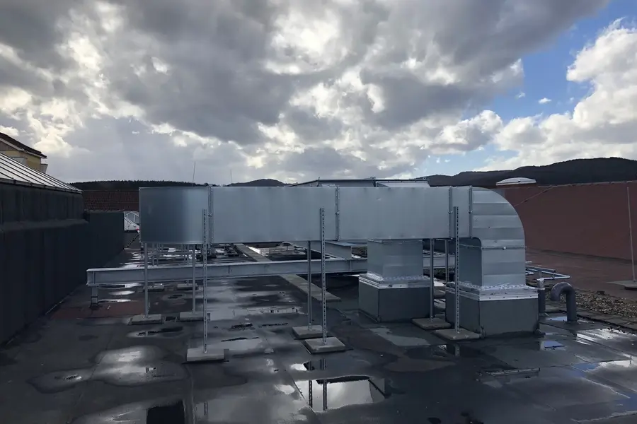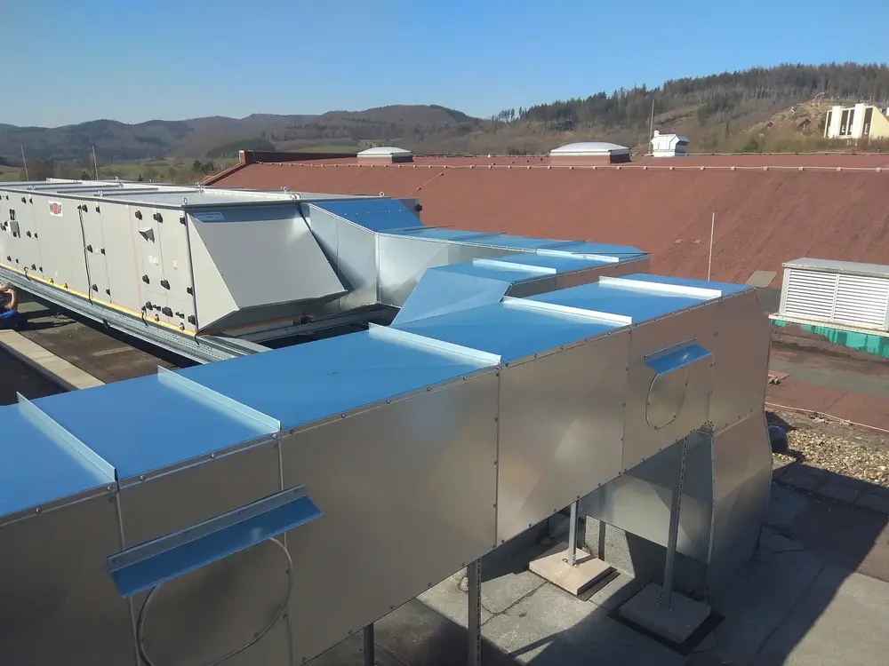 Wir wurden beauftragt, eine Lüftungsanlage im Außenbereich zu dämmen. Lüftung der Zu- und Abluft mit Mineralwolle und verz. Blechmantel. Heizung mit 200% im Außenbereich und verz. Blechmantel.