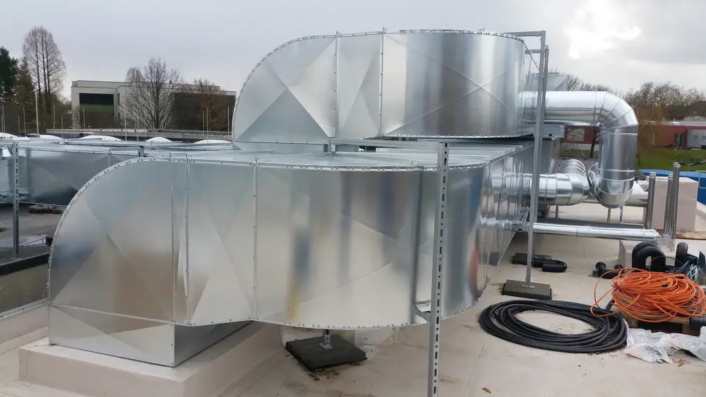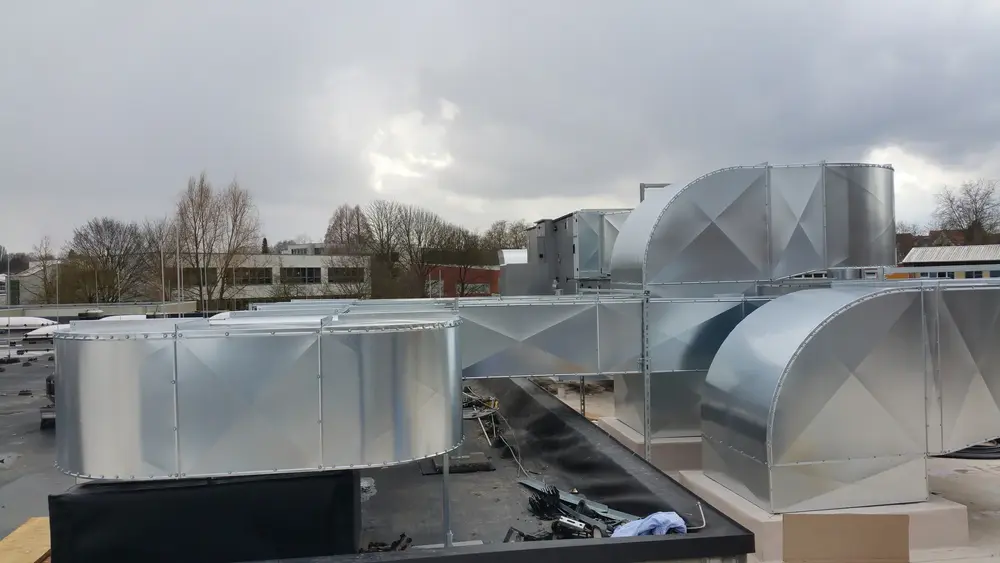 Wir wurden beauftragt, die neue Lüftungsanlage Speisesaal und Küche wärme- und schwitzwassergerecht zu dämmen. Kautschuk- und Mineralwolldämmung mit verz. Blechummantelung.