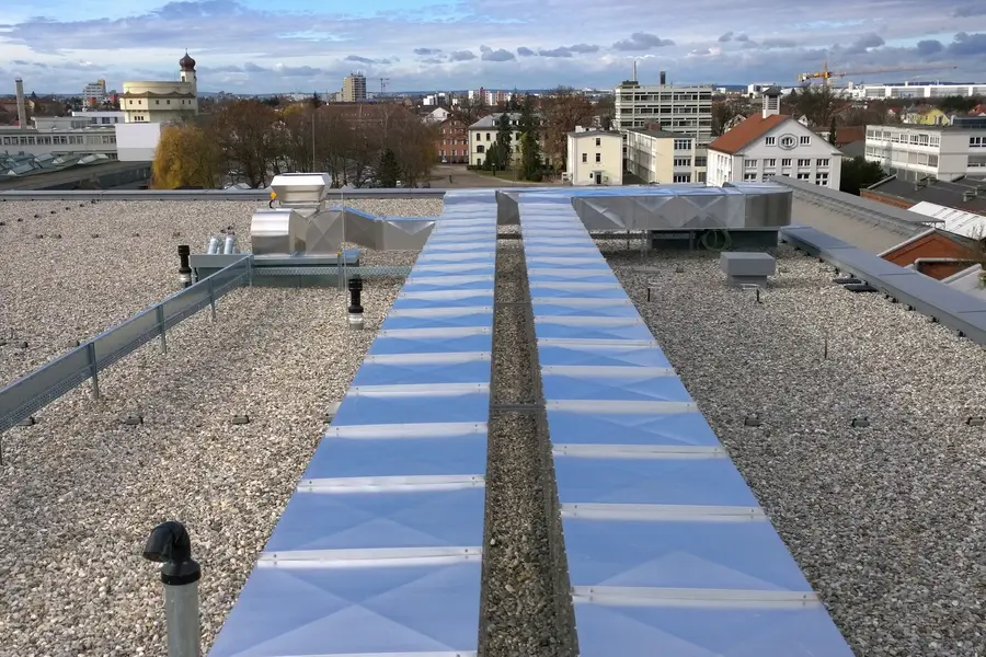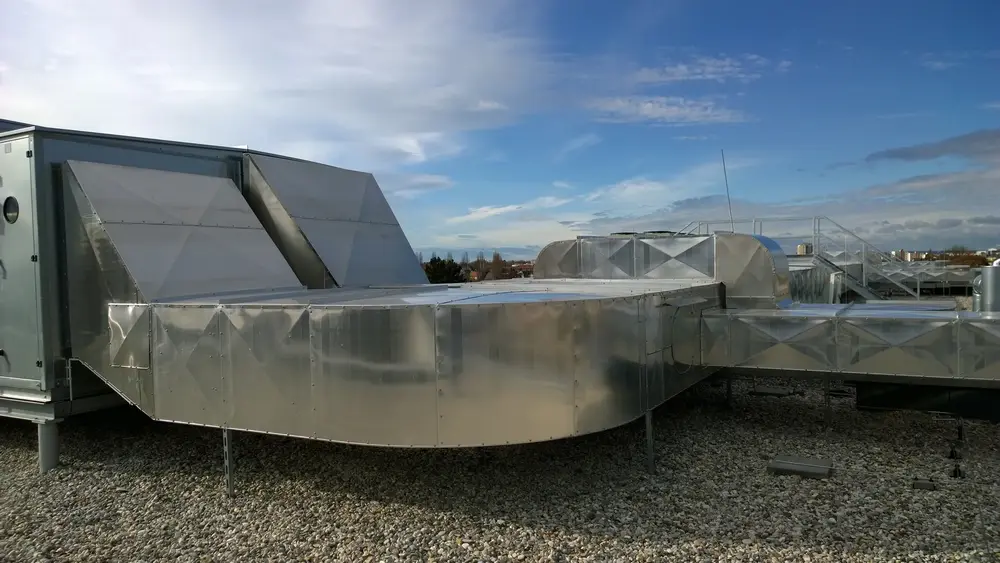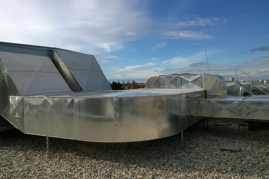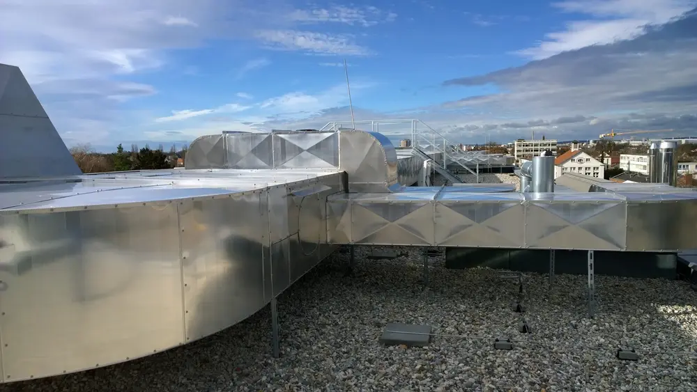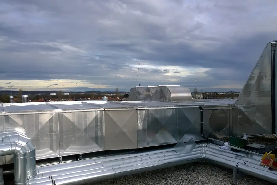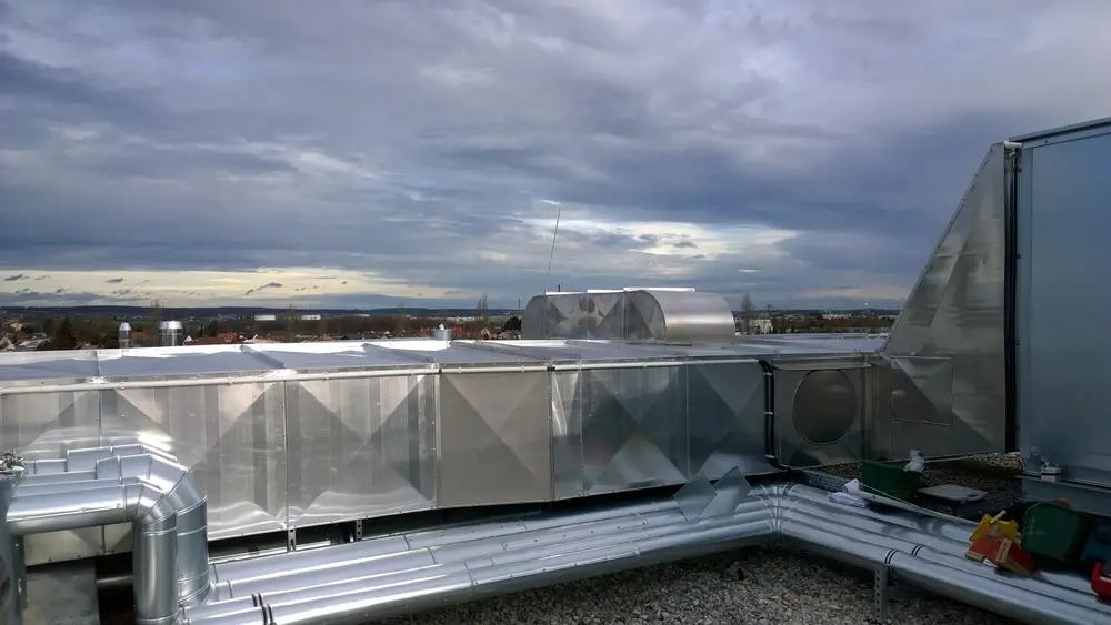 Wir wurden beauftragt, eine Lüftungsanlage im Außenbereich zu dämmen. Lüftung der Zu- und Abluft mit Mineralwolle und Aluminium Blechmantel.
