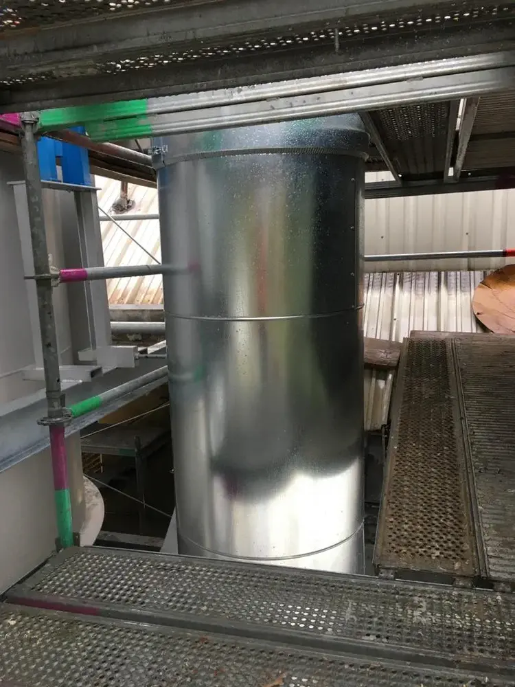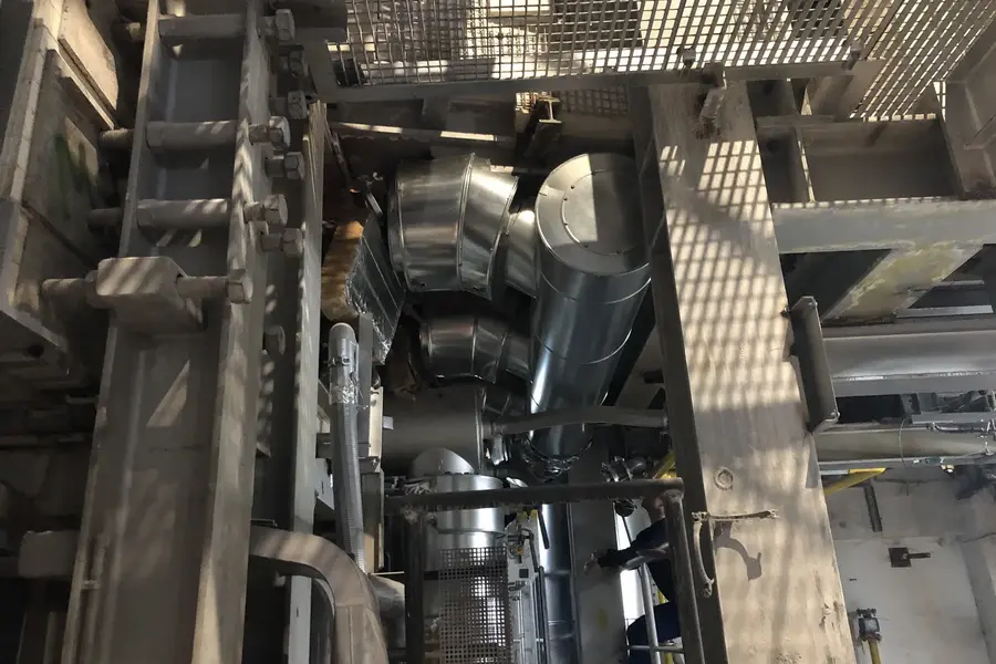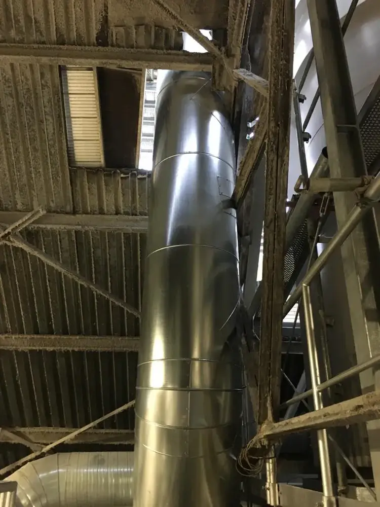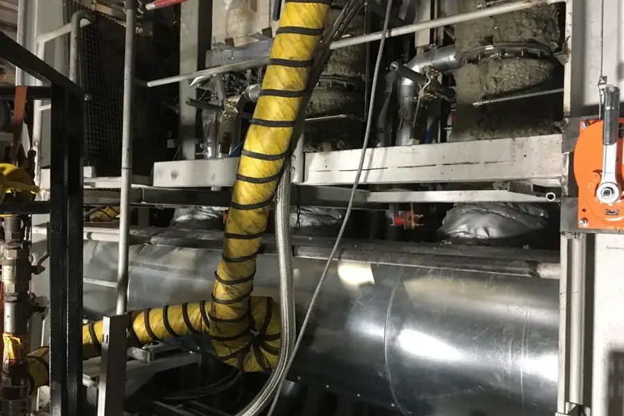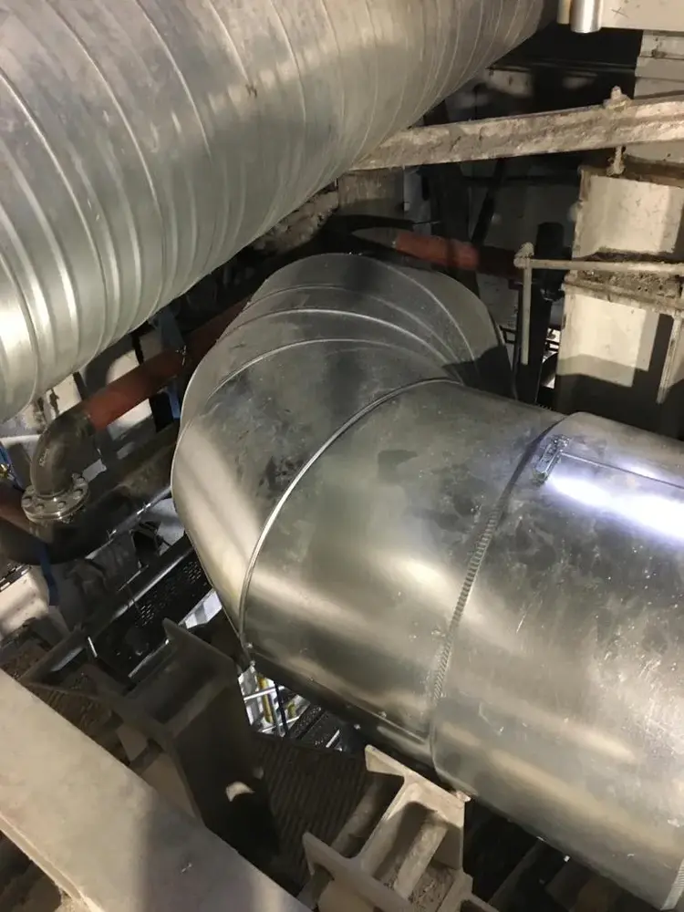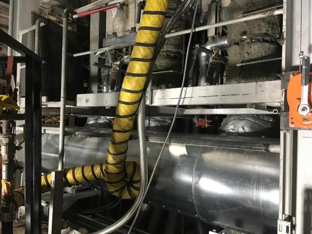 Wir wurden im Zuge des Neubaus einer Glaswanne beauftragt, die Dämmung der Heißluftleitung durchzuführen. 2 Lagen Steinwollematten und Blechummantelung.