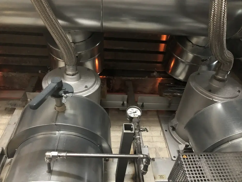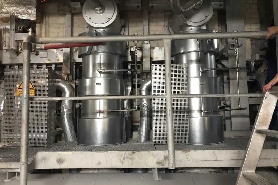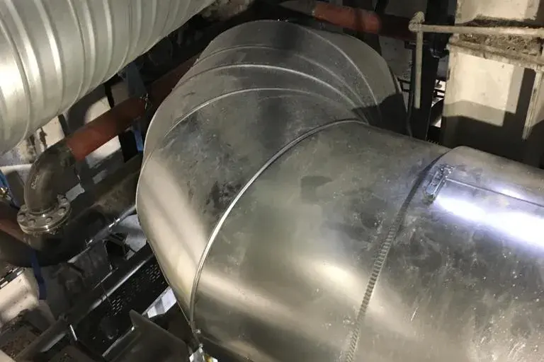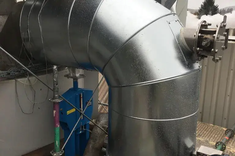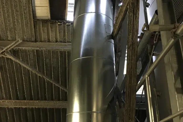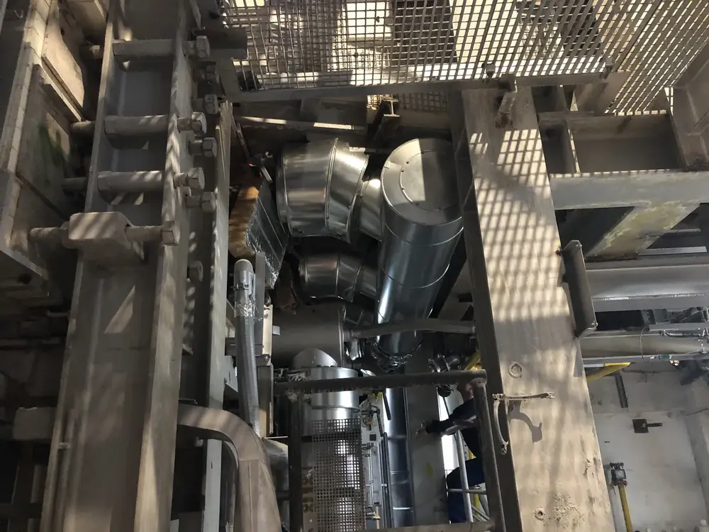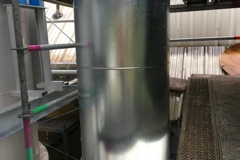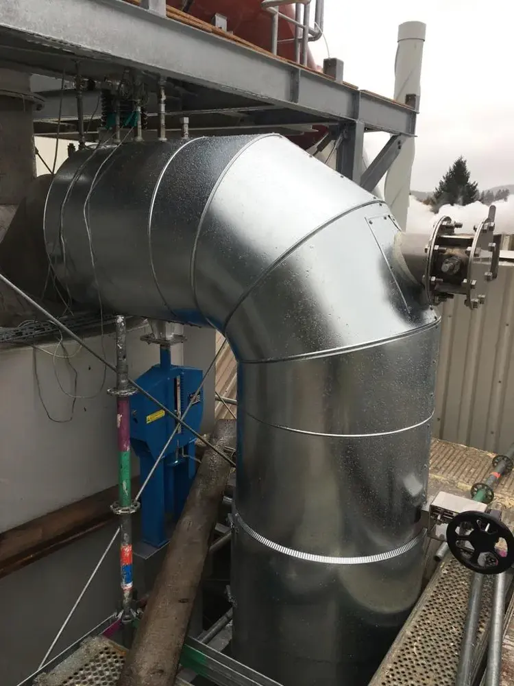 Wir wurden im Zuge des Neubaus einer Glaswanne beauftragt, die Dämmung der Heißluftleitung durchzuführen. 2 Lagen Steinwollematten und Blechummantelung.