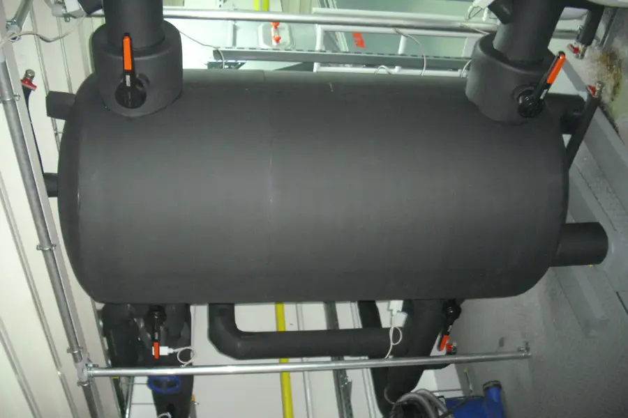Wir wurden beauftragt, die Schwitzwasserdämmung der neuen Raumkühlungsanlage auszuführen. Synthetischer Kautschuk als Dämmung und Blechmantel im Außenbereich.